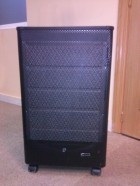 Estructura de madera con cuerpo de tela color crudo, 5 hojas de 60 cm. de largo x 190 cm. de alto. x 3 cm. de grueso.