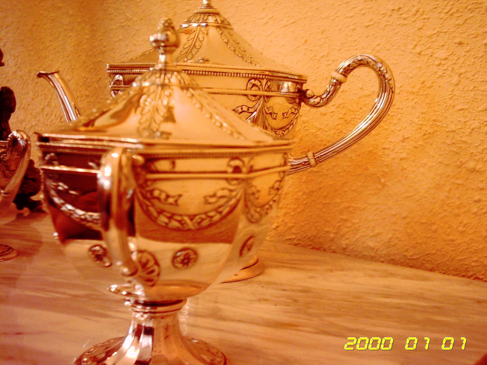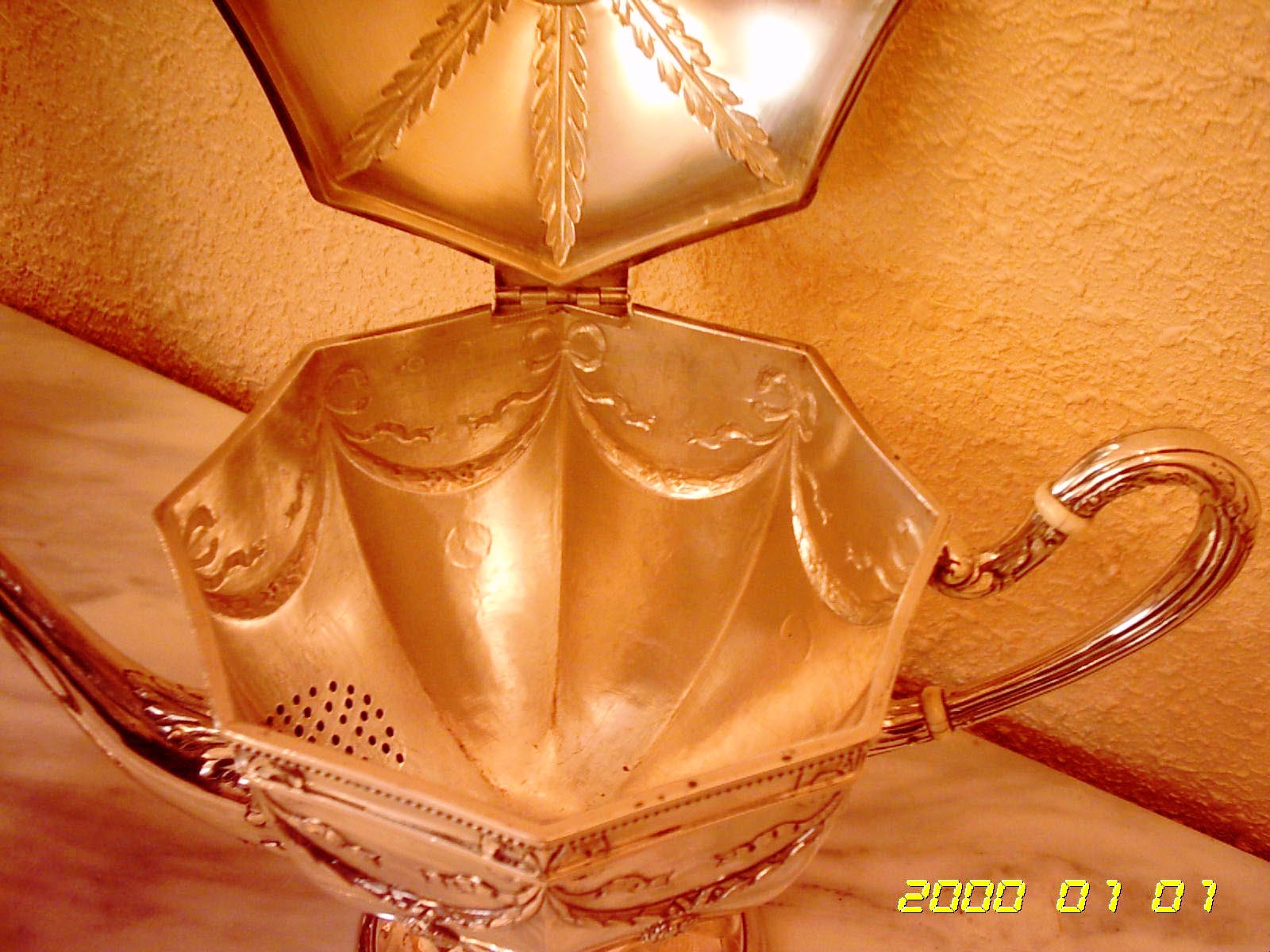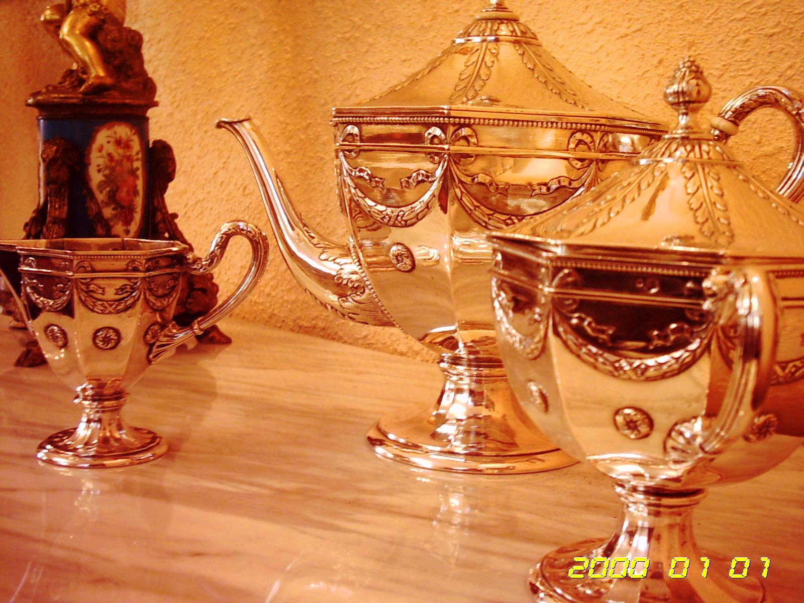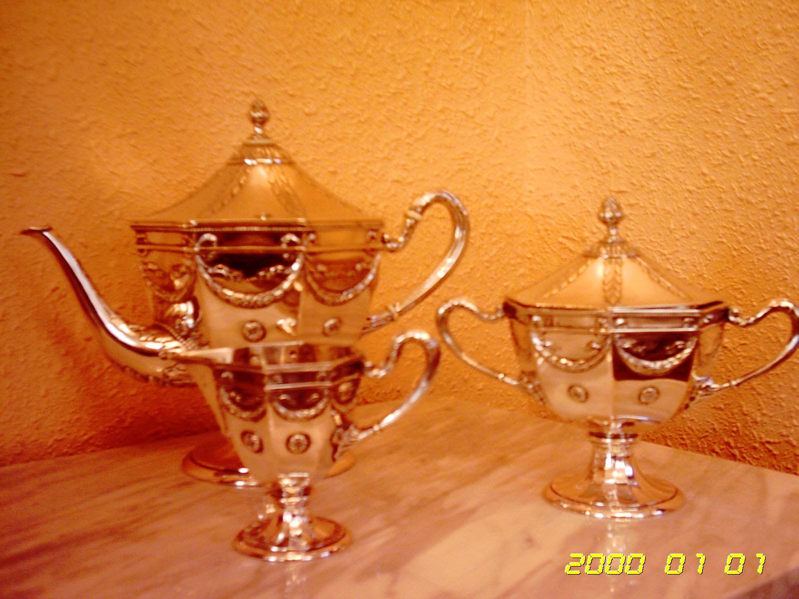 PRECIOSO CONJUNTO DE PLATA, TRES PIEZAS, DISEÑADO PARA UN CARDENAL DEL VATICANO.