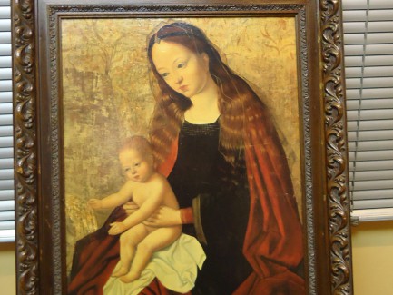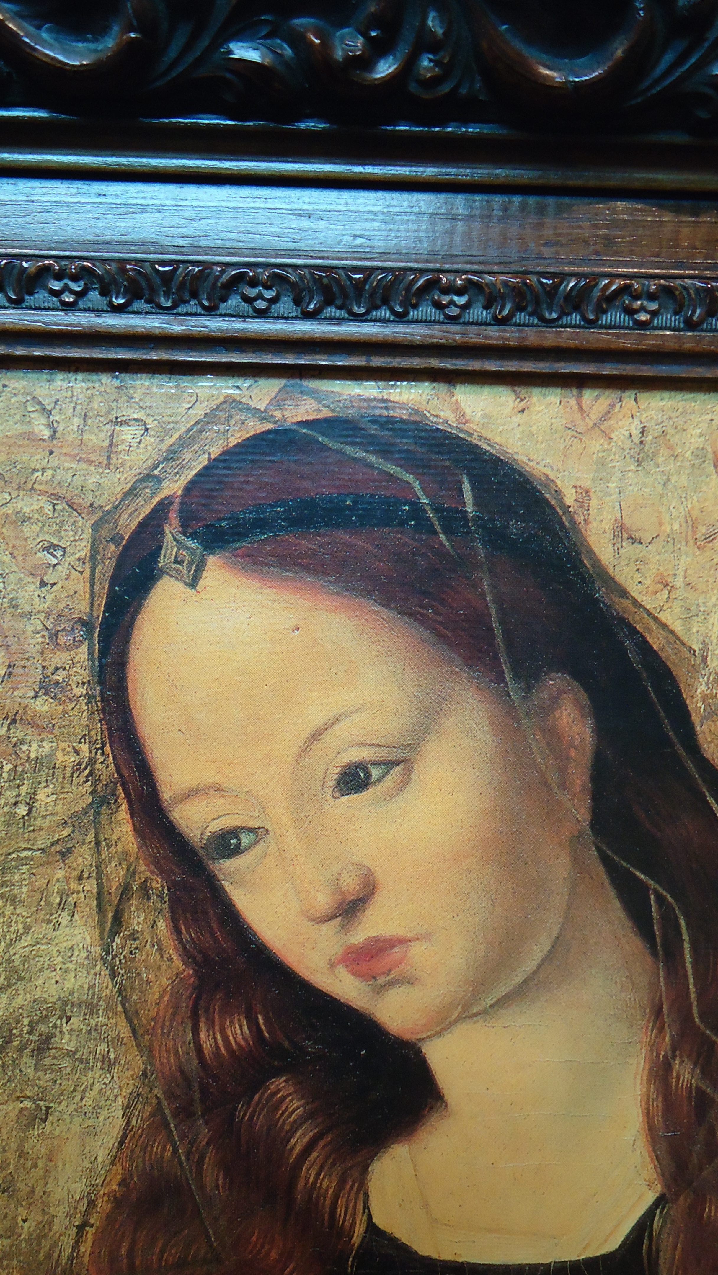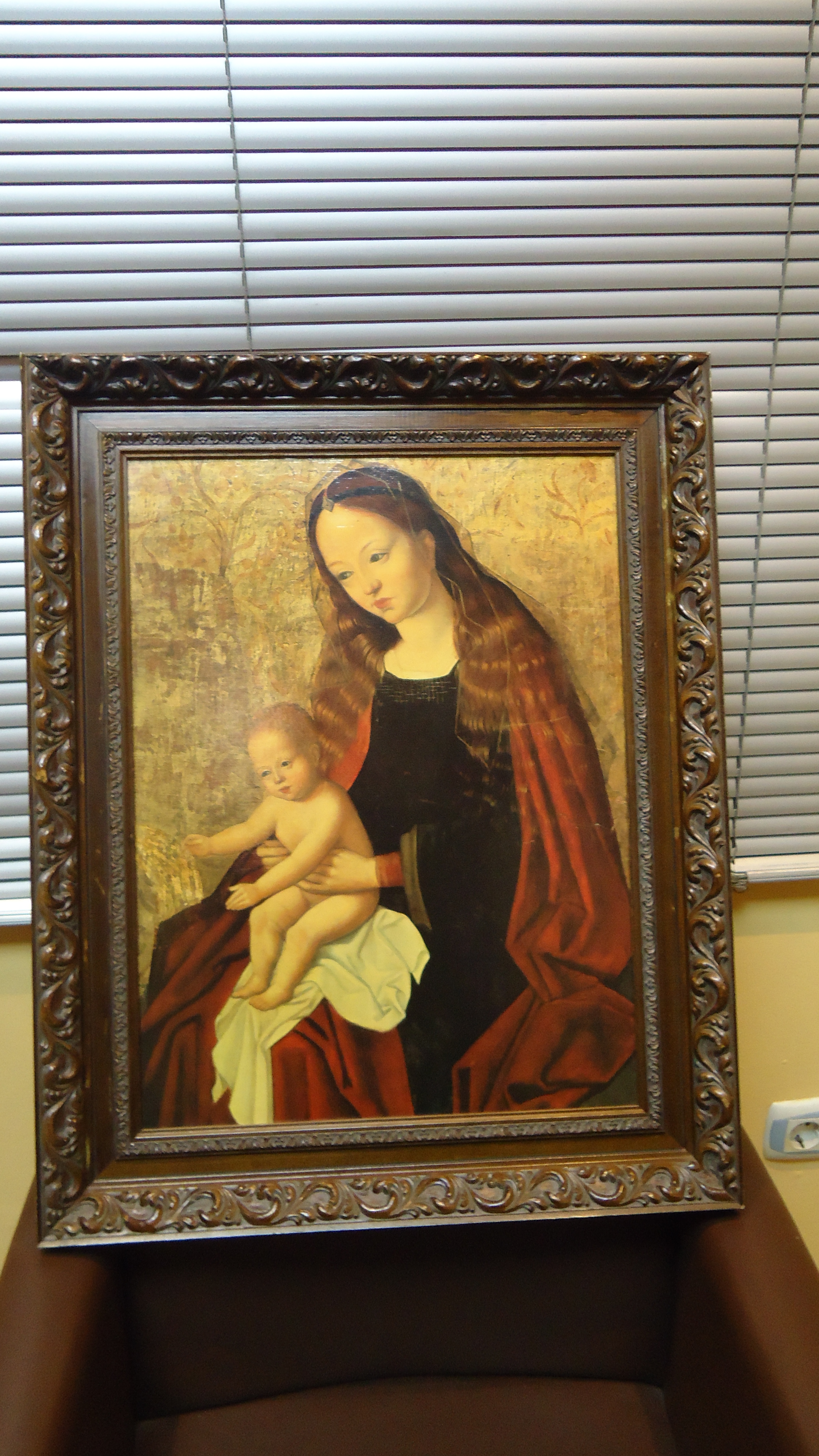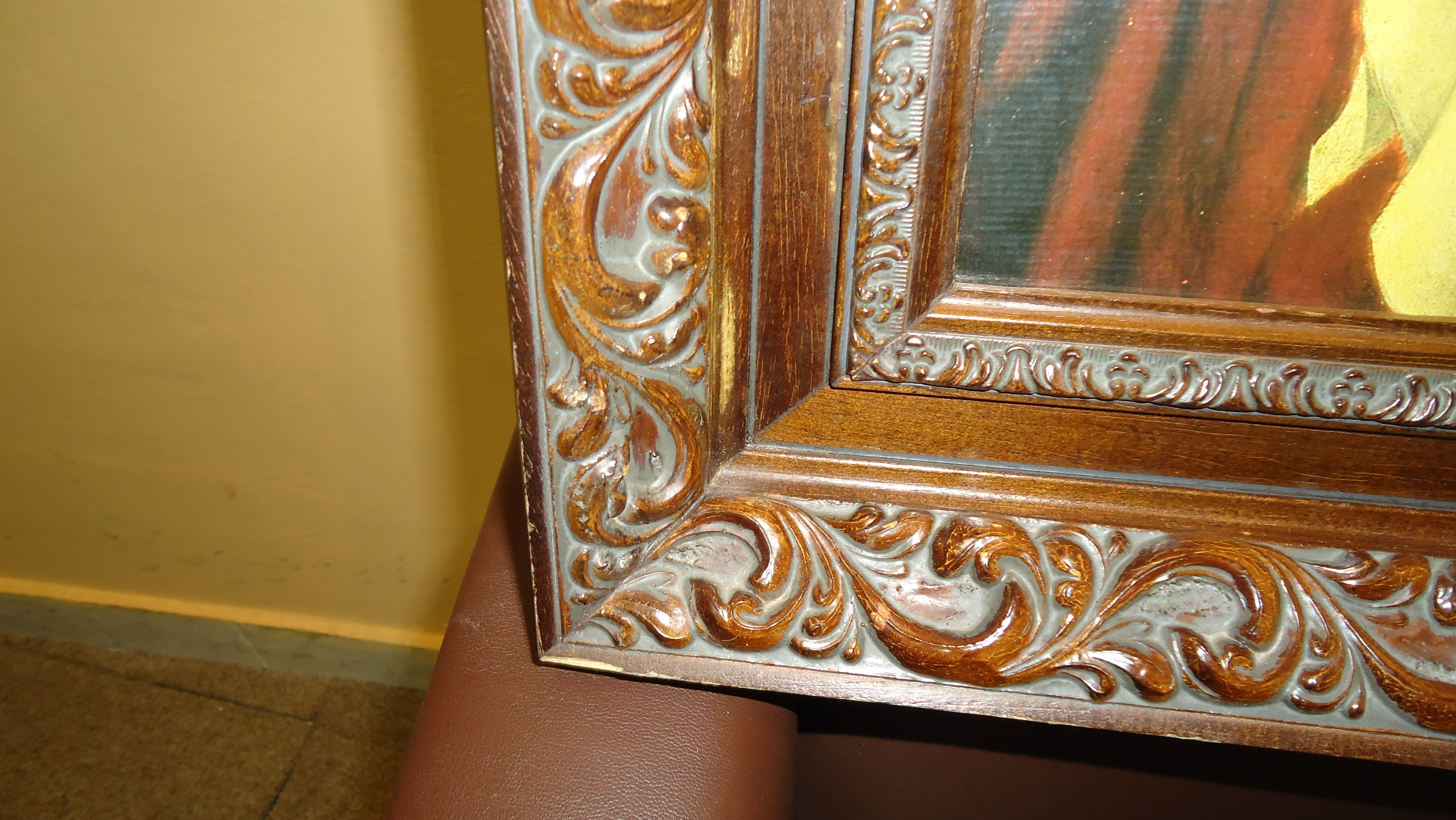 LÁMINA SOBRE TABLA, 41 LARGO X 55 ALTO,CON MARCO DE MADERA LABRADA 56 LARGO X 70.5 ALTO X 4.5 ANCHO.
