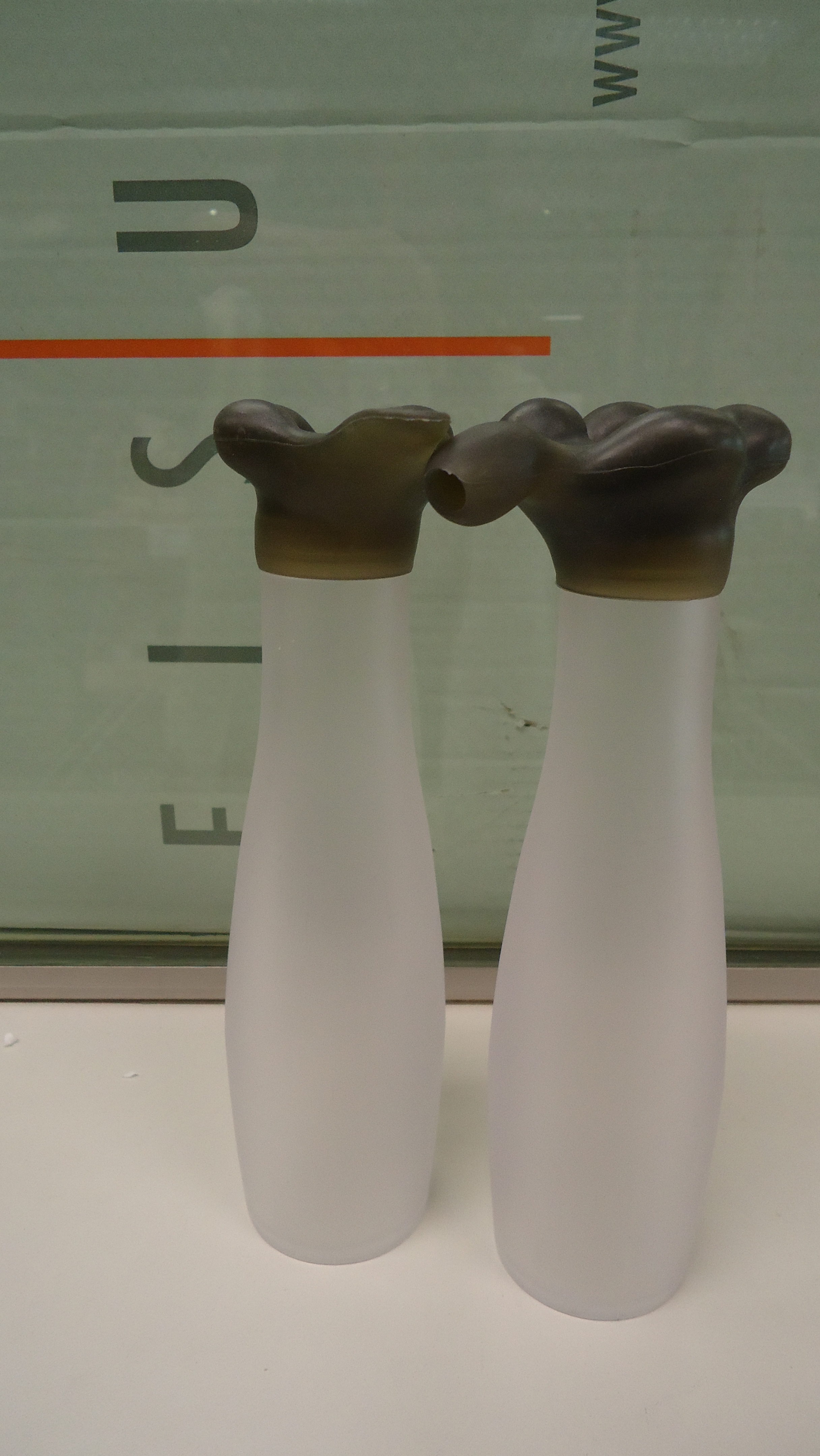 Original juego de aceitera y vinagrera de cristal con tapa en forma de flor . Medidas 23cm Al x 5.5 La x 9.5 An. Disponemos de cantidad. Embalaje original en caja de cartón con las dos unidades. PARA COMPRA DE CANTIDAD CONSULTAR PRECIO.