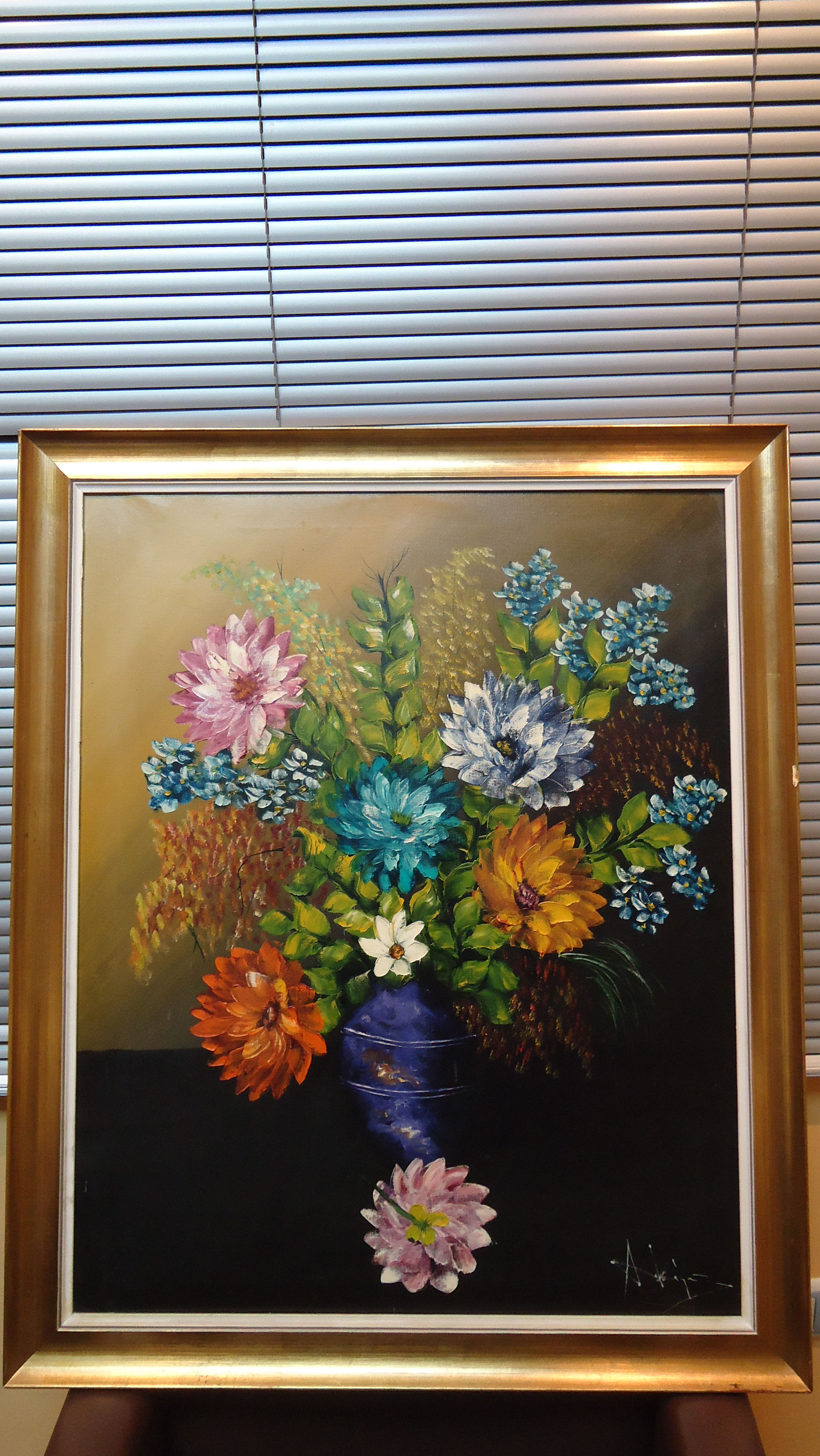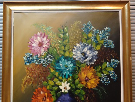 LIENZO AL ÓLEO, JARRÓN CON FLORES. MEDIDAS 63 LARGO X 79 ALTO. CON MARCO 76 LARGO X 92 ALTO X 3 ANCHO. FIRMADO POR ALIJA.