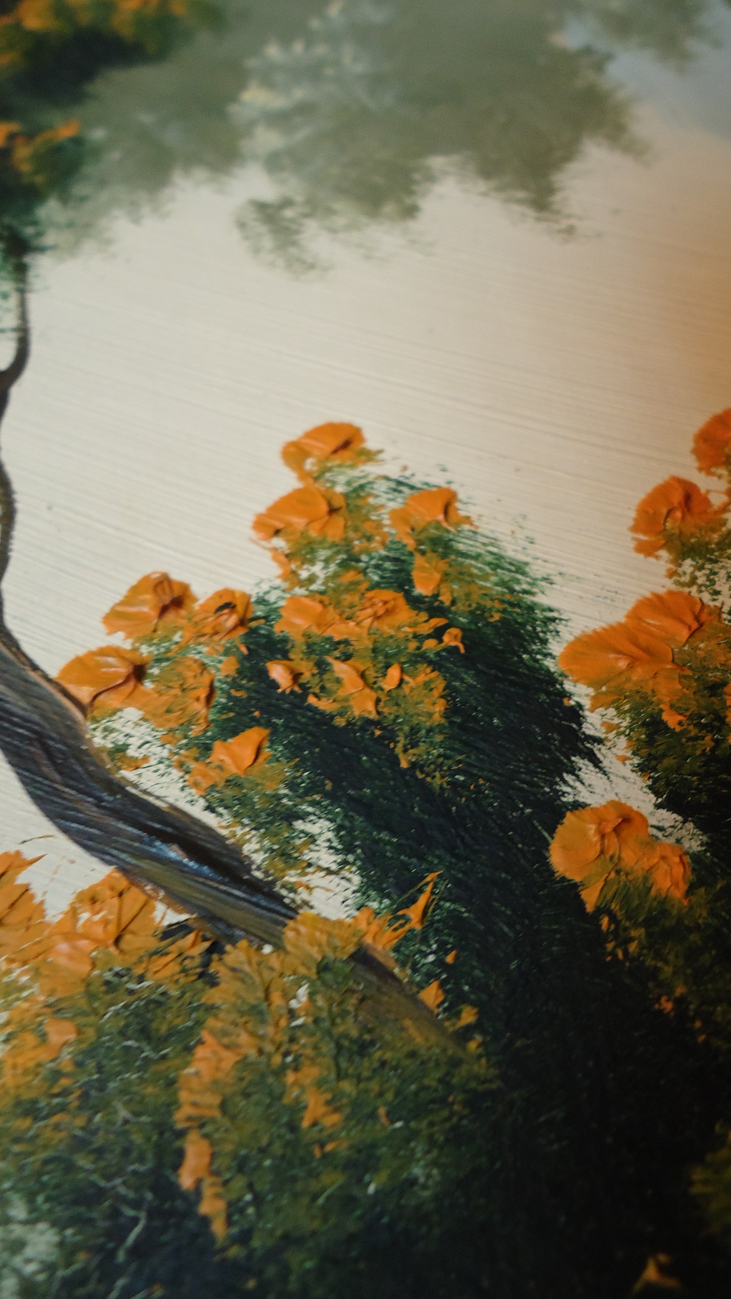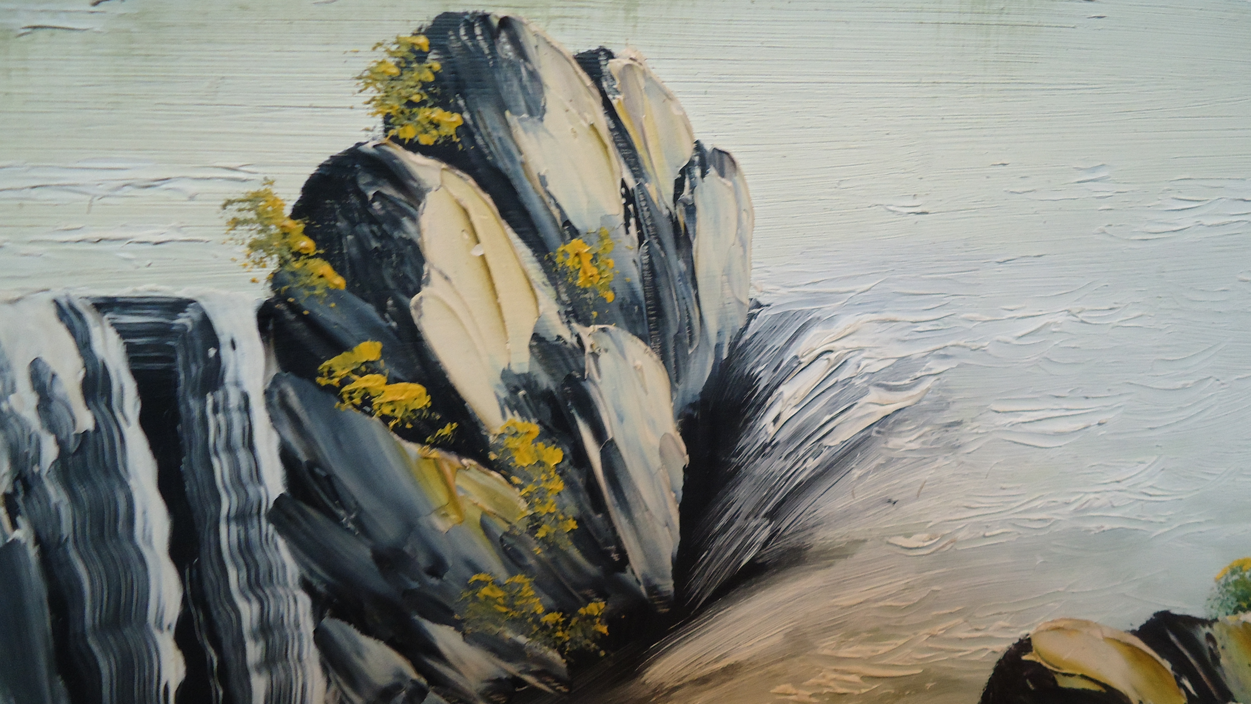 LIENZO AL ÓLEO, PAISAJE CON CASCADA.