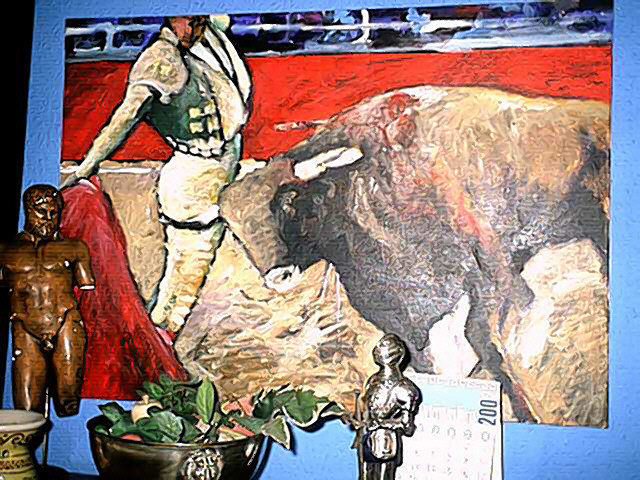 LIENZO ESCENA TOREO FIRMADO POR SANDOVAL. MEDIDAS DEL LIENZO 70X50.