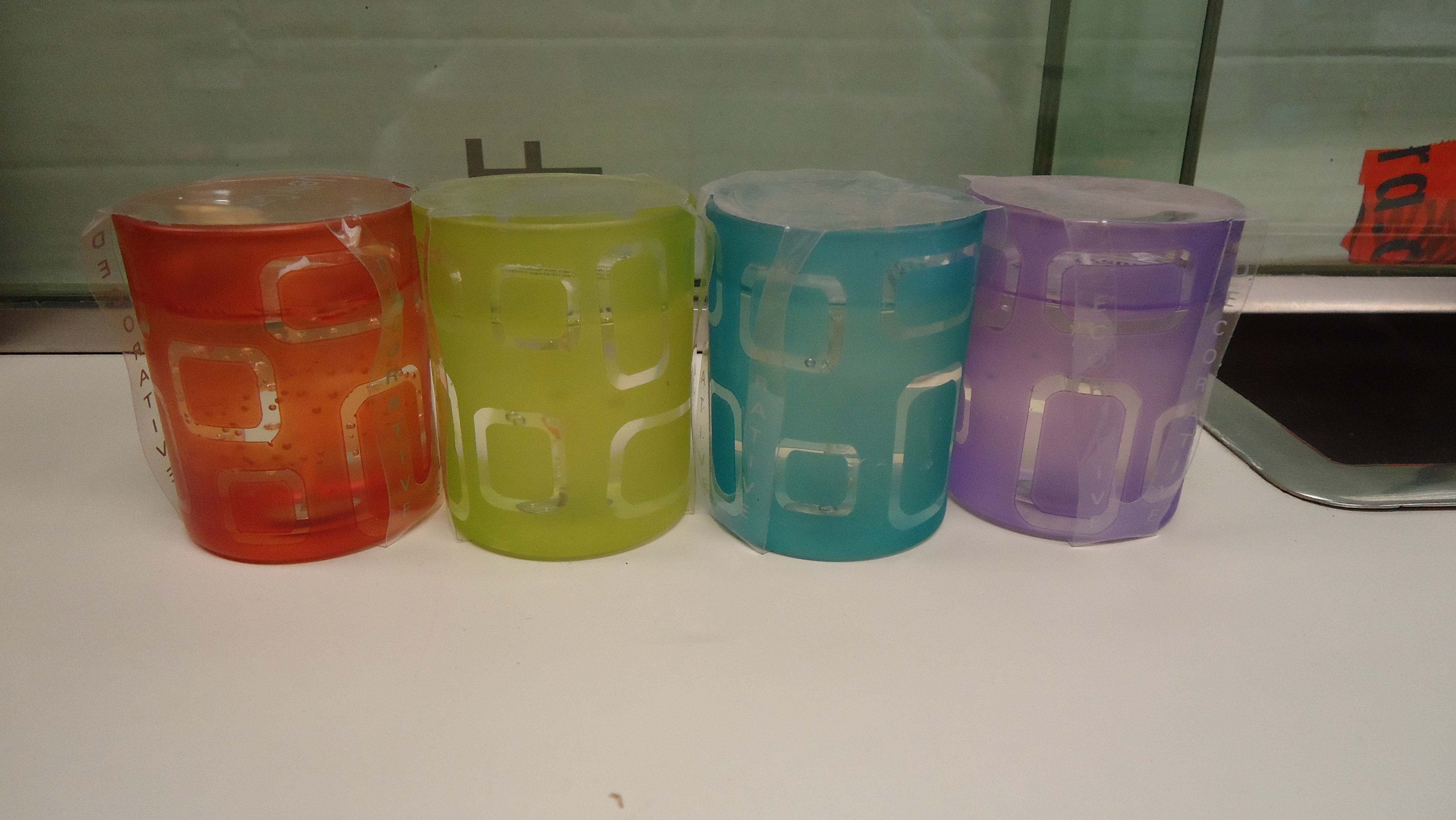 Velas de gel en vaso, disponible en 4 colores: naranja-amarillo-turquesa y lila, son un ©modelo exclusivo de FISURA®. Disponemos de cantidad. PARA COMPRA DE CANTIDAD CONSULTAR PRECIO.